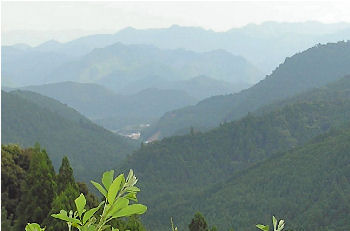 伏拝王子への途中で遠くに見た果無(はてなし)山脈は重畳たる≠ェ似合う見事な眺めだった。 |