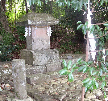 | 和泉式部が熊野に参詣した際、にわかに月のものが始まり、ここから社殿を拝んだという伝説に因む。式部がわが身の汚れを嘆いて詠んだ歌。 |